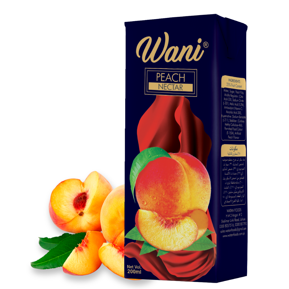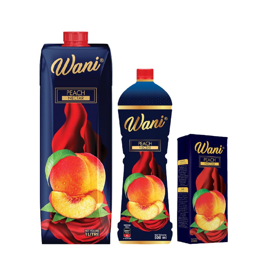 Indulge in the smooth and juicy taste of Wani Peach Nectar, made with 25% real peach fruit. Available in 1000ml, 500ml, and 200ml sizes, it’s a delightful treat for your taste buds and perfect for any occasion.